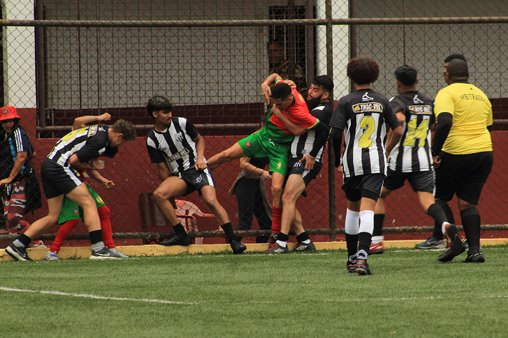 O jogo seguia com o Meninos pressionando, aos sete minutos Matheus Mafra se estranhou com zagueiro adversário, a confusão estava armada, enquanto alguns atletas tentavam separar outros trocavam socos, pontapés e voadoras.